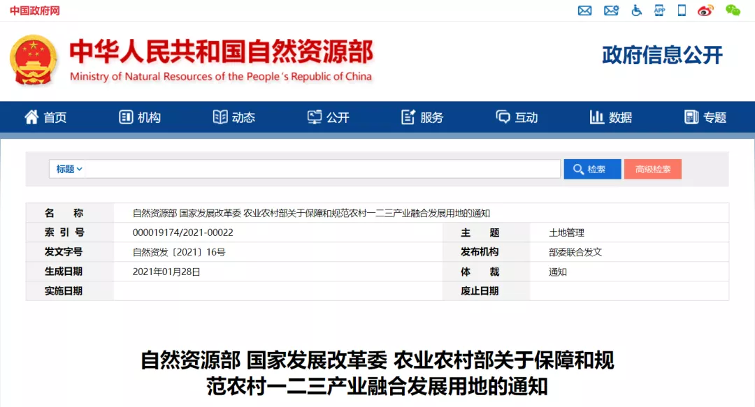 为贯彻落实党中央、国务院优先发展农业农村、全面推进乡村振兴的决策部署,发展县域经济,顺应农村产业发展规律,保障农村一二三产业融合发展合理用地需求,为农村产业发展壮大留出用地空间,现通知如下: