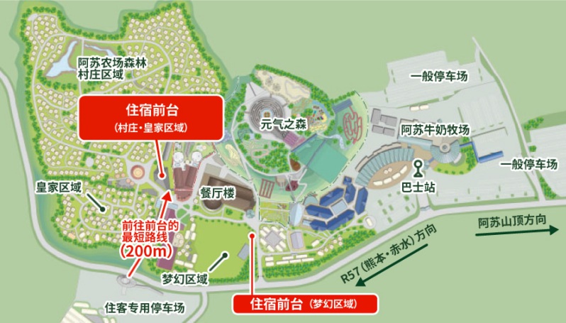 农场三大元素:阿苏农场是一座多功能综合型寓教于乐的休闲乐园,位于阿苏长野村内,占地约100万平方公尺。建设者以“人、自然、元气”三大元素,将农场与自然揉为一体,循地势错落山谷之中。
