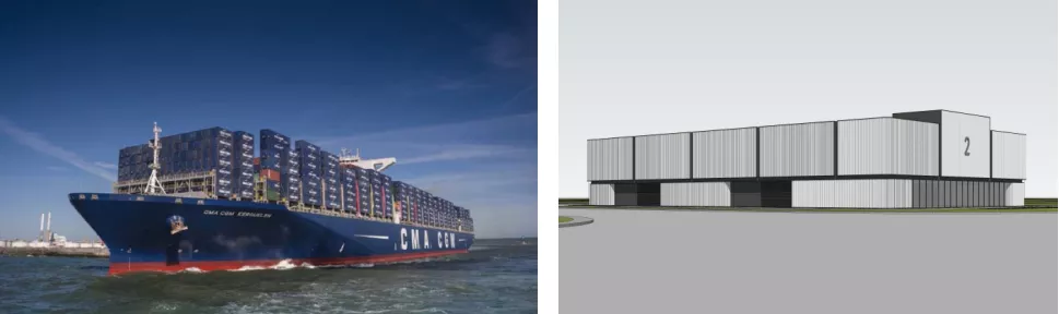 以“未来科技”“未来人文”“未来生态”实现“共享未来、共享创造”为设计理念,以集装箱运输船的造型为设计灵感,规划建设21幢高标准厂房,建筑面积约12.9万平方米,总投资达12亿元。