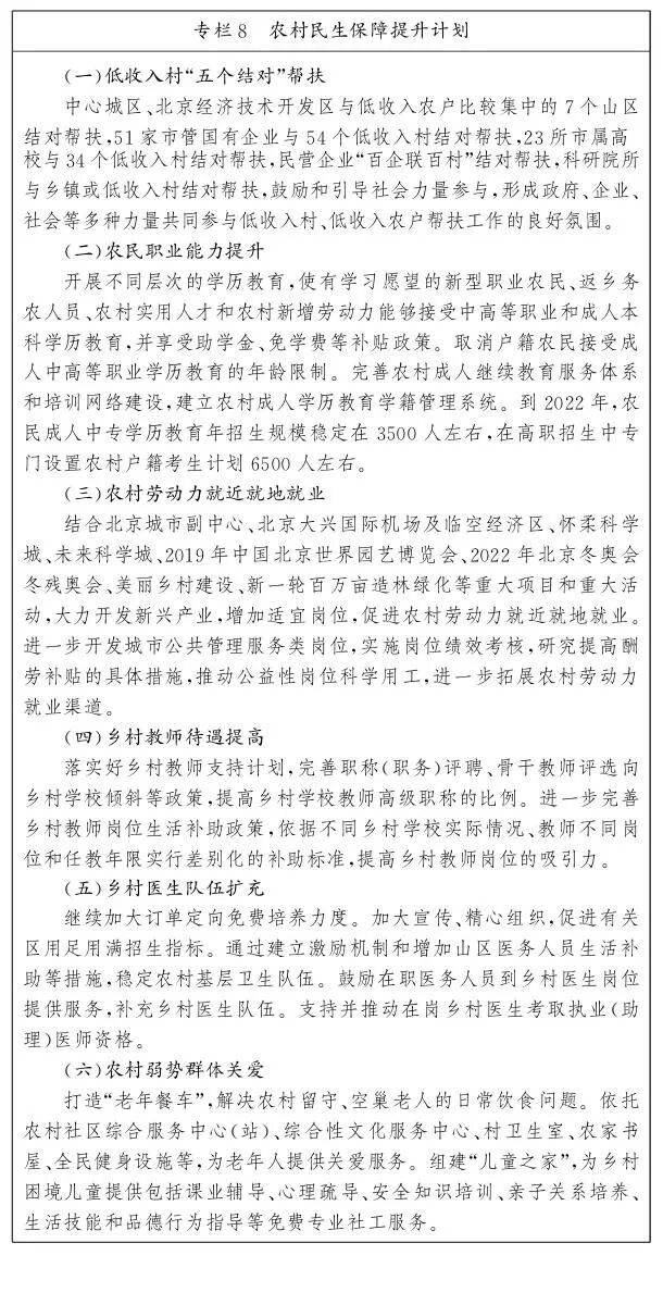 到2022年,预计累计创建1100个首都绿色村庄,现行标准下所有低收入农户家庭人均可支配收入超过现行标准线,234个低收入村全部脱低,低收入村全部消除。北京市乡村将拥有新家园、新乡风、新生活和新动能。